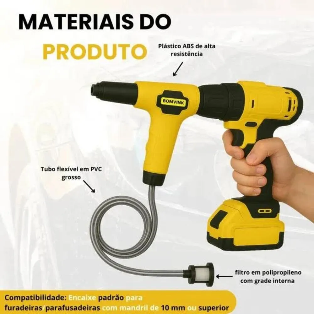 O Adaptador de Lavadora para Parafusadeira BOM-7976 Bomvink é a solução ideal para quem busca praticidade e economia na hora da limpeza. Compatível com parafusadeiras elétricas ou a bateria, ele permite utilizar a força do equipamento para gerar pressão de água, tornando a lavagem muito mais eficiente.