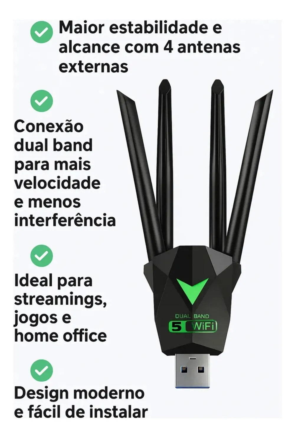 O produto possui tecnologia dual band, possibilitando operação em mais de uma faixa de frequência, conforme a compatibilidade do sistema e da rede utilizada.