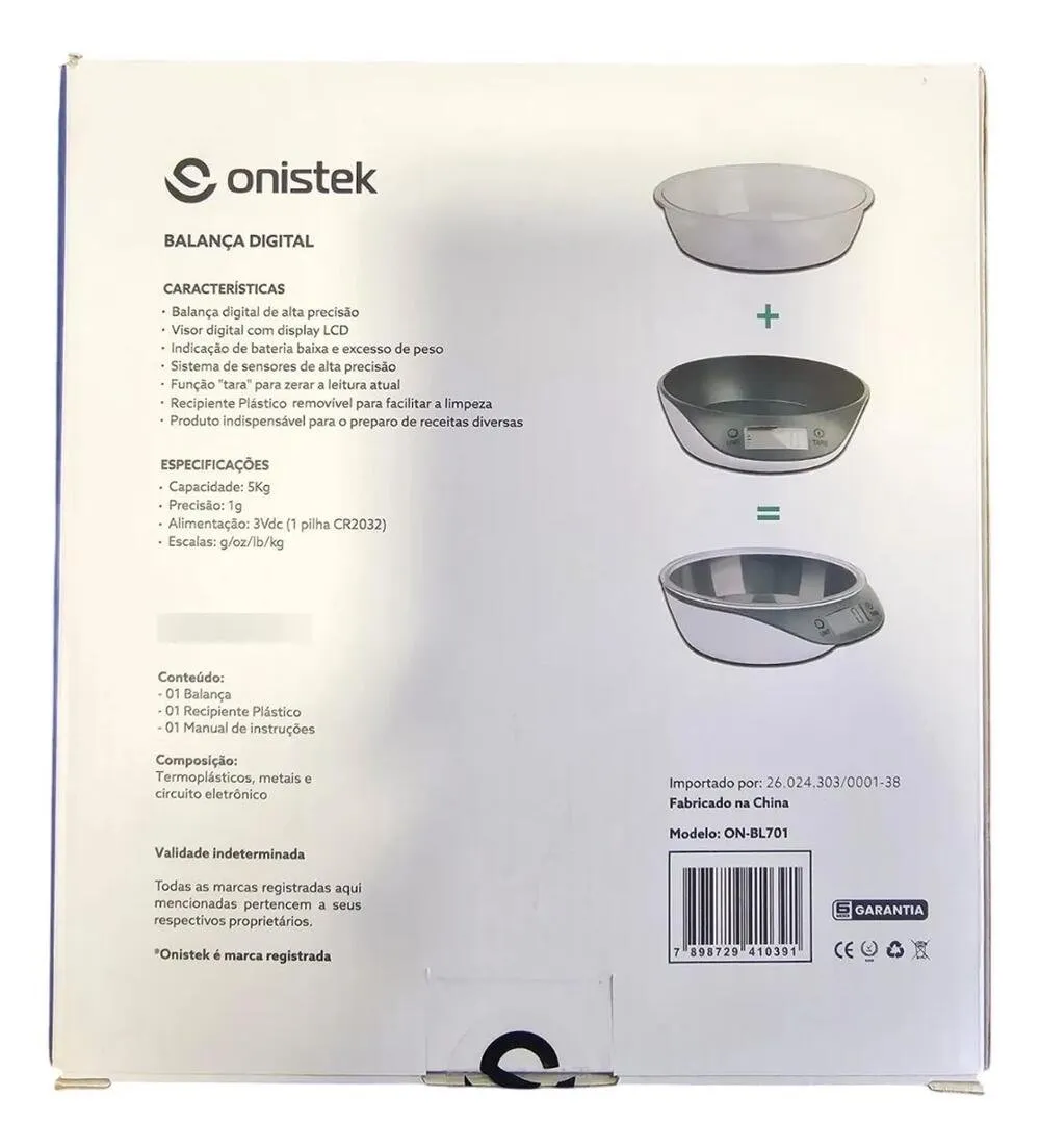 A balança digital ONISTEK BL701 é um acessório essencial para a cozinha moderna, oferecendo precisão, praticidade e versatilidade. Com capacidade máxima de 5 kg e sensibilidade de 1 g, ela garante medidas exatas para preparar receitas com maior controle e confiabilidade — desde porções pequenas até cargas maiores de ingredientes.