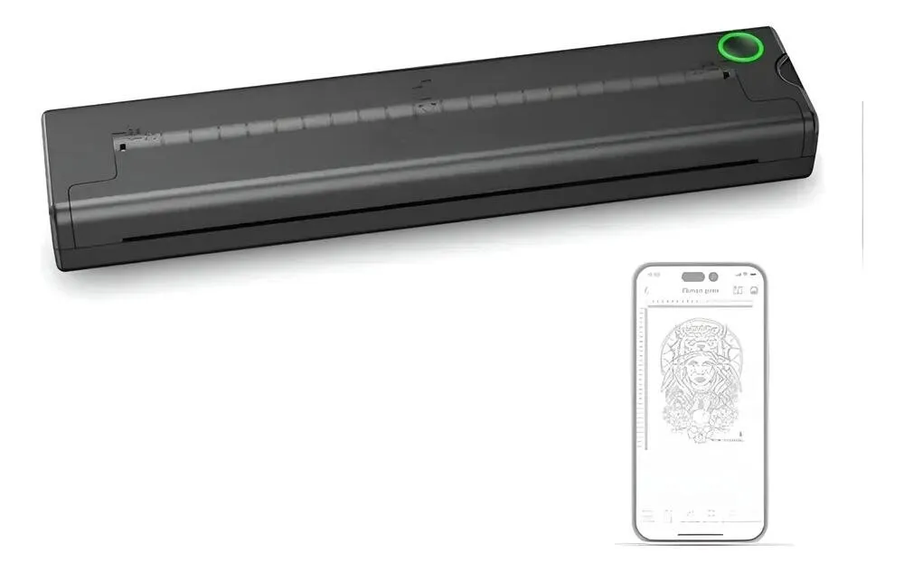 Impressora desenvolvida para realização de decalques de tatuagem, sendo utilizada na preparação de estêncil para aplicação em procedimentos de tatuagem, conforme a compatibilidade do método e dos materiais utilizados.