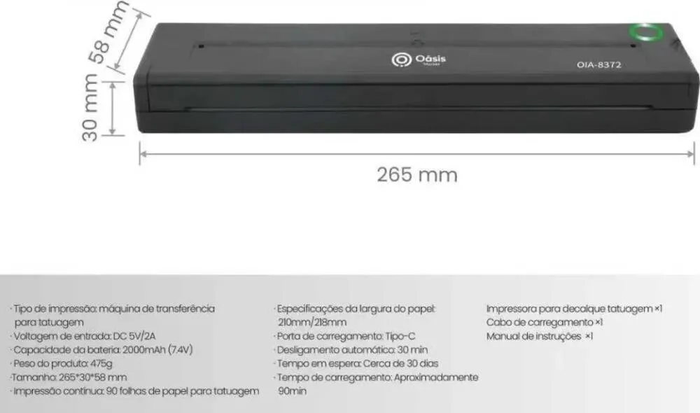 Tipo: Impressora para decalque de tatuagem